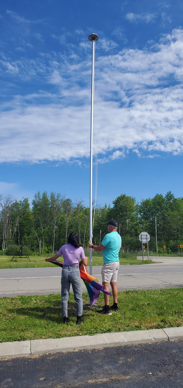 On Saturday, June 5th, a custom-designed Seneca Nation Pride Flag was raised on the Tallchief Territory, Home of Native Pride in recognition of June as LGBTQ+ Pride Month. The flag is defined by the Seneca Nation Symbol centered in a field of red, orange, yellow, green, blue, and violet stripes. It will remain raised through the month as a sign that no matter who you are, whatever your culture, or your life choices, all people are welcome at Tallchief Territory.